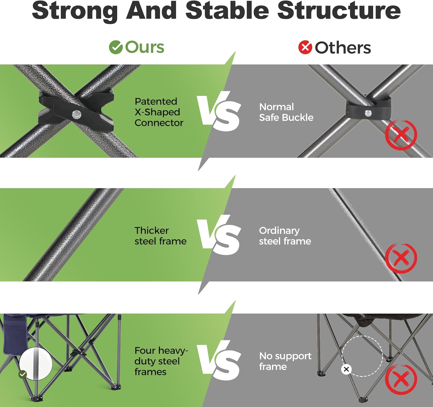 【Durable and Reliable】 Made with a strong powder-coated steel tube frame and 600D padded oxford fabric, our camping chair is built to last and has a weight capacity of up to 450lbs, providing you with the stability and security you need