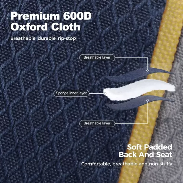 LET’S CAMP Folding Camping Chair Oversized Heavy Duty Padded Outdoor Chair with Cup Holder Storage and Cooler Bag, 450 LBS Weight Capacity, Thicken 600D Oxford(Navy Blue)