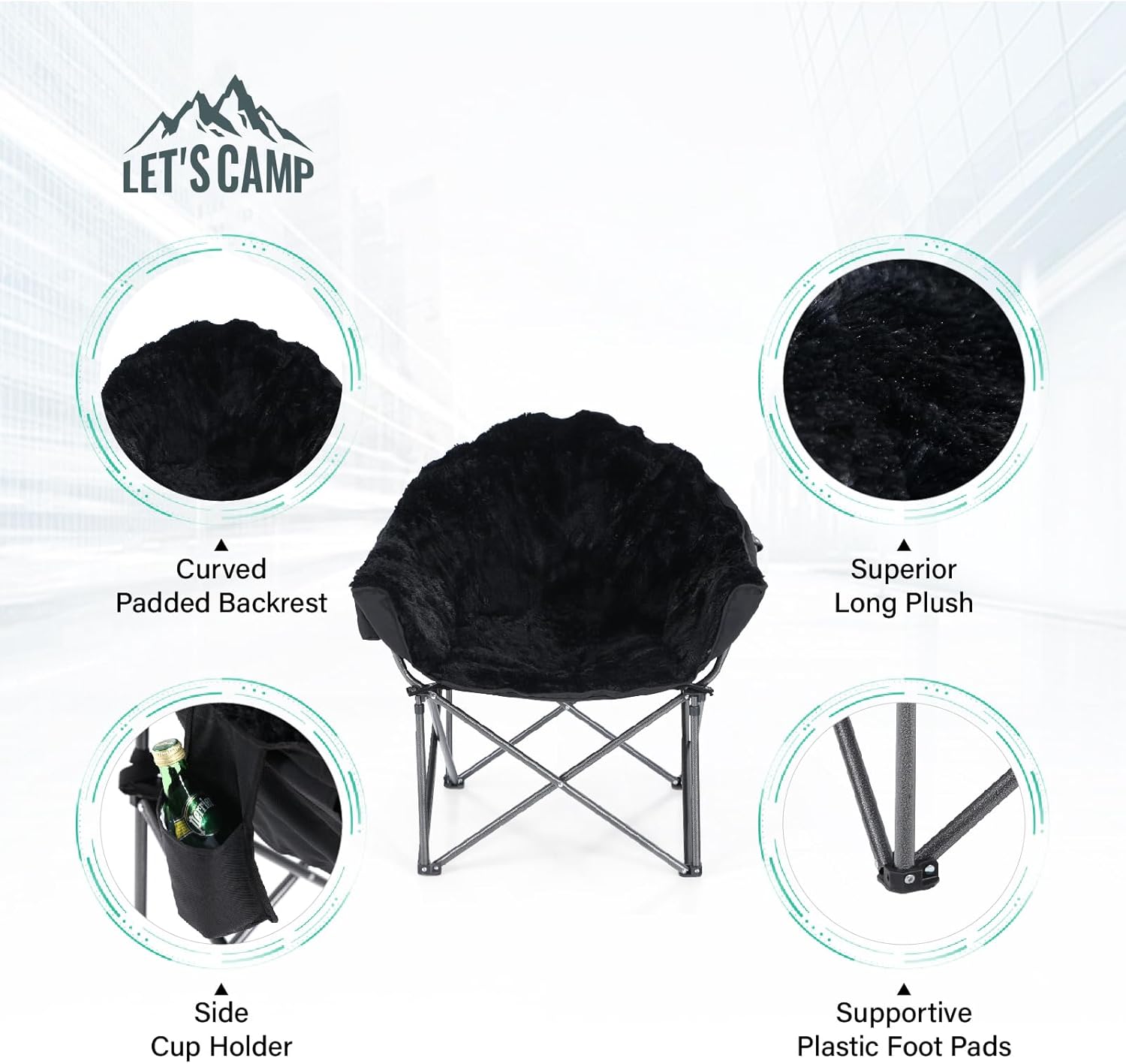 【Prime Fabric】Fluffy long plush give you complete soft touch. It does not harm to you, low irritation and friendly to skin. Can keep warm in the night of the camping. The padded backrest and seat will make you feel comfy, bring fully support to body
